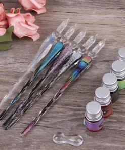 A (3ks) – Získajte 1 súpravu skleneného pera Crystalyst obsahuje Pero 1 ks + držiak na pero 1 ks + atrament 1 ks