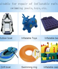 4. Počkajte približne 10 minút alebo použite sušič vlasov na vyfúkanie náplasti potiahnutej lepidlom, a ako aj prilepenej časti zlého výrobku, kým lepidlo nie je lepkavé a je trochu suché, prilepte vopred narezanú náplasť na miesto , ktoré potrebujete náplasť, silne priklepte plochým predmetom. Po 12 hodinách stlačenia ťažkého predmetu znova nafúknite a použite.