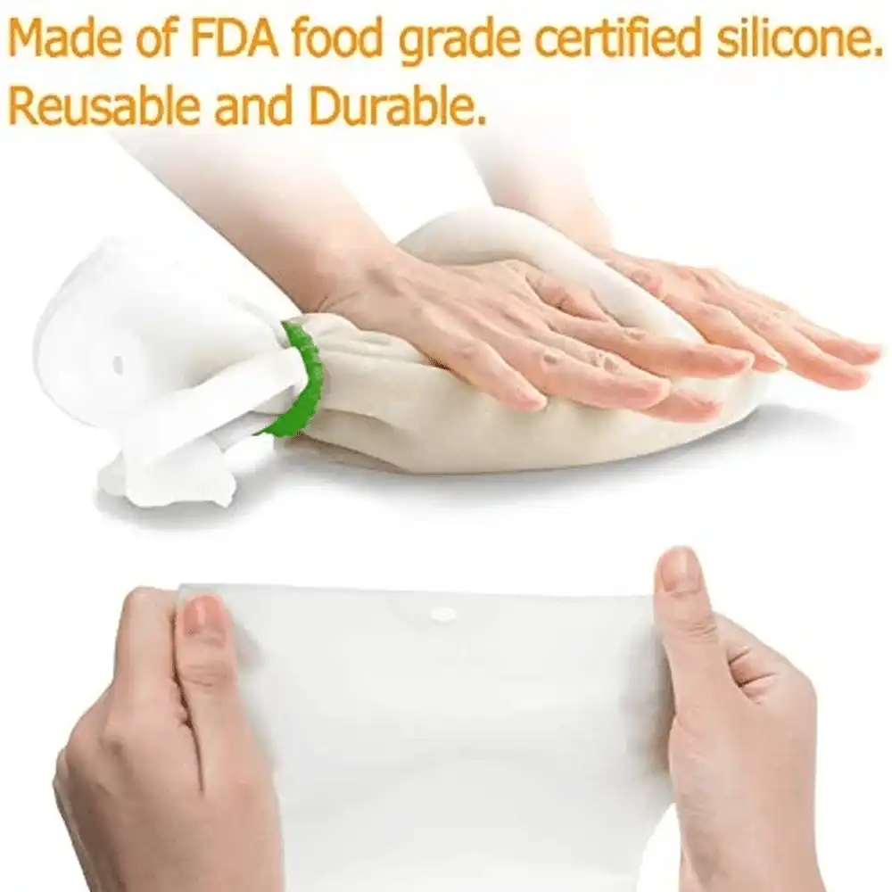 - Nevyhnutný doplnok vo vašej kuchyni. S týmto zázračným vreckom na miesenie cesta môžete pridať ingrediencie, ako je múka, voda, vajcia, všetko zmiešať, vrecko zviazať a začať miesiť. To zabraňuje tomu, aby múka všade striekala. Na marinovanie mäsa alebo rýb nalejte ingrediencie, zaviažte vrecko a vložte do chladničky. Môže sa tiež použiť na lisovanie ovocia a zeleniny na výrobu džemu